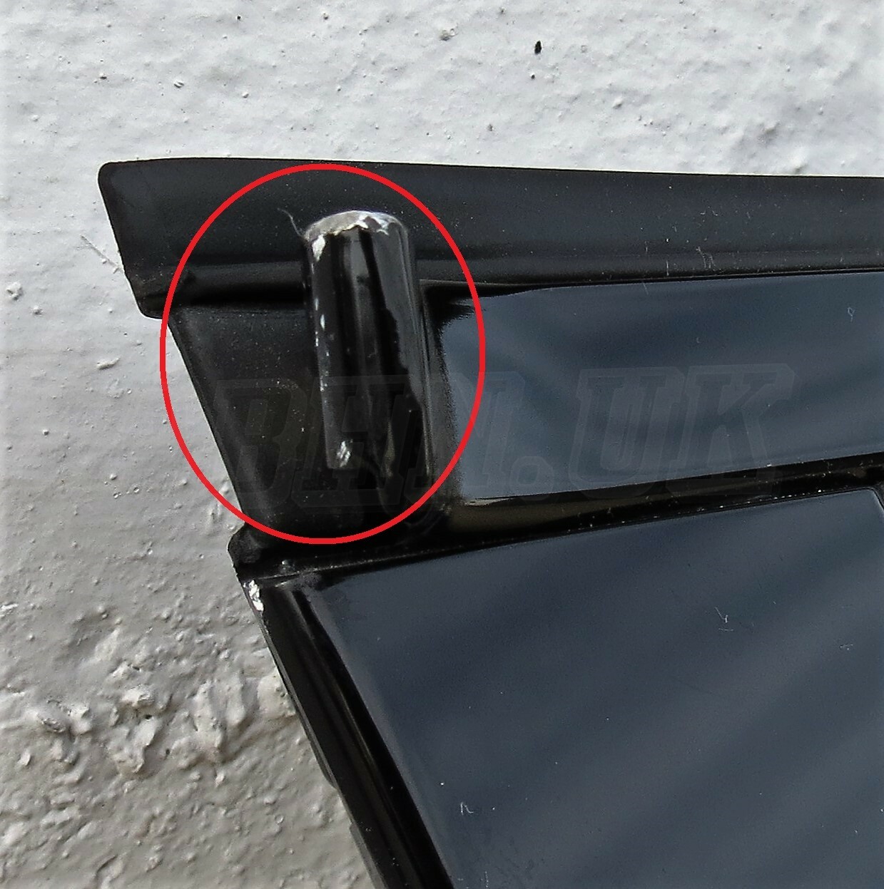 Dents are being highlighted in circle, and scratches being lined out.