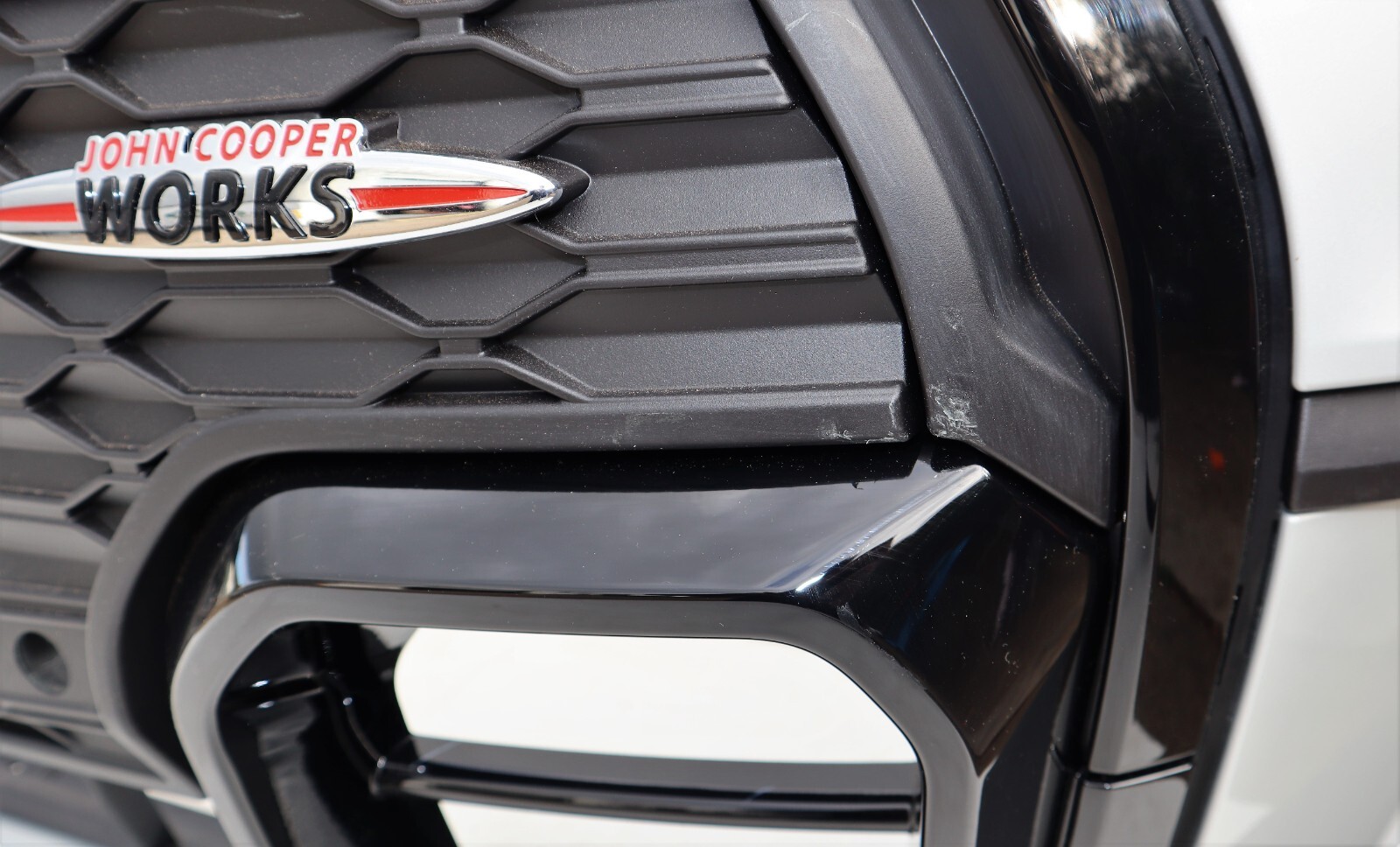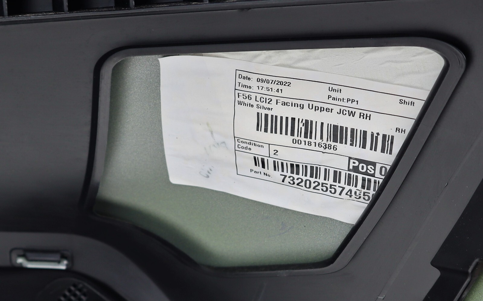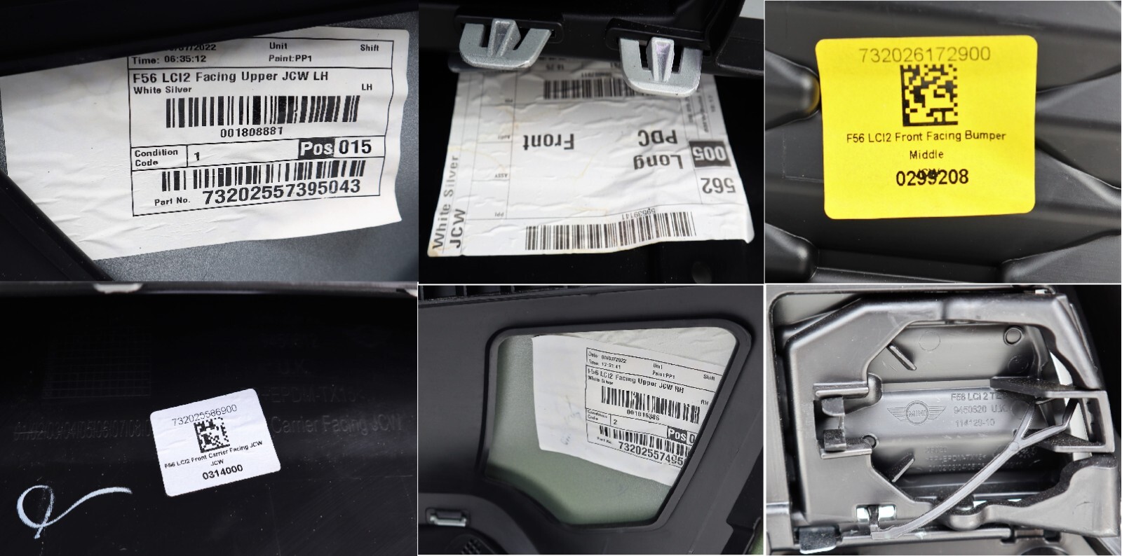 Descriptions & Specifications: Front complete bumper finished in White Silver , Complete bumper, 4 PDC Holes, Include Eye Towing Cover. This is new – never been fitted to the car, however there might some light scratches and dust from transport and Storage. All marks are highlighted if there’s so please inspect the actual photos as much as possible. There’s a cut in the middle of the top grille. List of parts needed or to replace for conversion from none JCW: New washer bottle, crash bar foam, lower crash bar & brackets, new splash guards (jcw), new wheel arch trims, new radiator air guides (jcw) new top air guide to bumper bracket. Free Postage within United Kingdom only. Dispatch: Same Working Day.