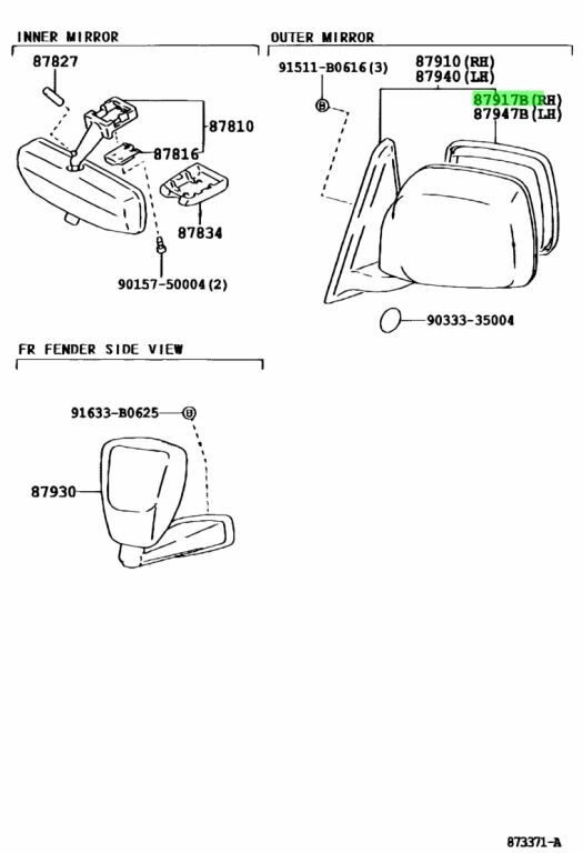 Genuine Toyota and Complete Right Side Electric Heated & Power Folding Door Mirror